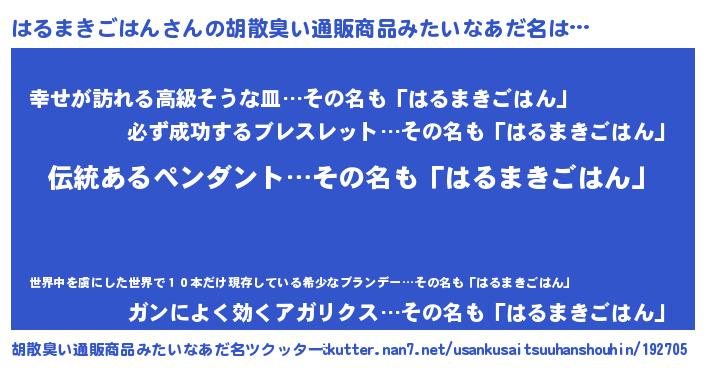 | 意味不明あだ名 | 『とにかく怪しいはるまきごはん』 |