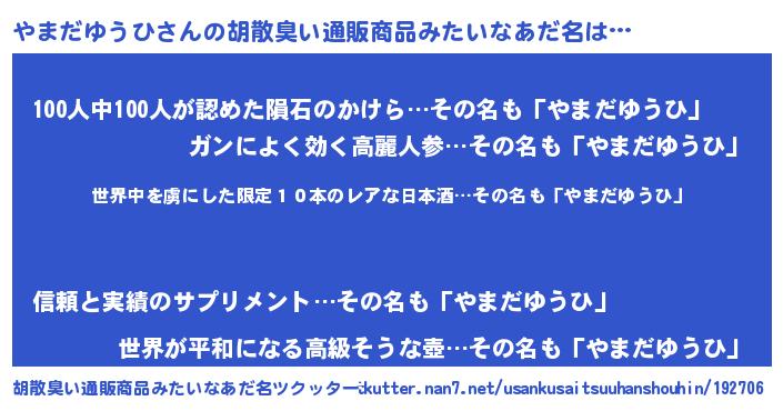 | 意味不明あだ名 | 『住所不定無職やまだゆうひ(68歳)』 |
