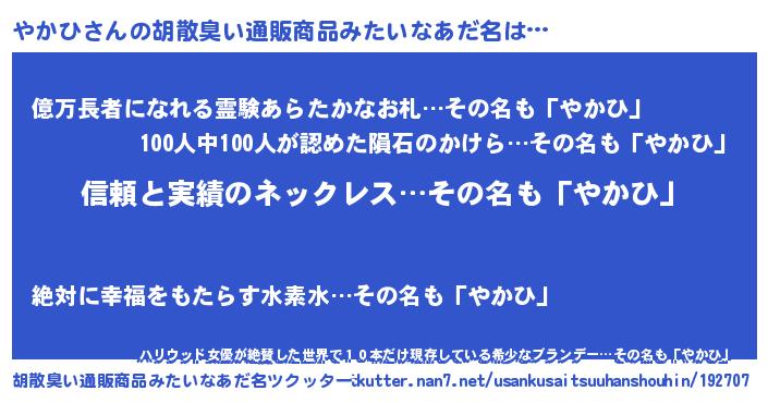 | 意味不明あだ名 | 『とにかく怪しいやかひ』 |