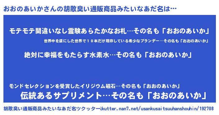 | ヘコむあだ名 | 『おおのあいか(遠い目)』『おおっふぃ~』 |