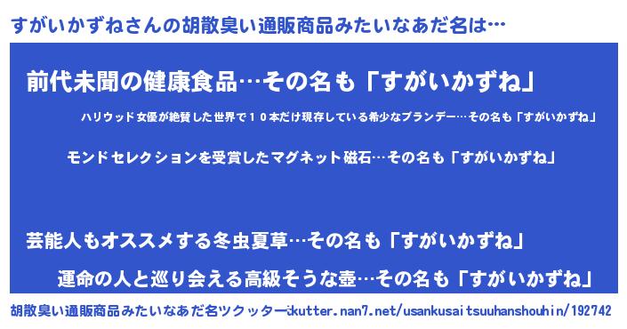 | ヒーロー風カッコイイあだ名 | 『慈愛の使者すがいかずね』 |