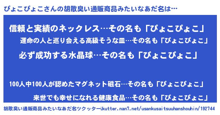 | ヒーロー風カッコイイあだ名 | 『スーパーピョコピョコ』『暗黒騎士ピョ』 |