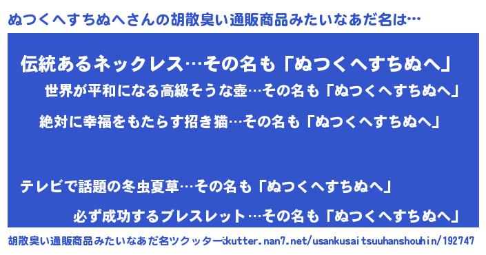 ぬつくへすちぬへさんの胡散臭い通販商品みたいなあだ名をツクッター!