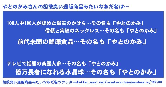 | 意味不明あだ名 | 『永久保存やとのかみ』 |