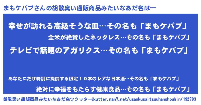 | 欧米人風あだ名 | 『ケンブリッジまもケバブ』 |