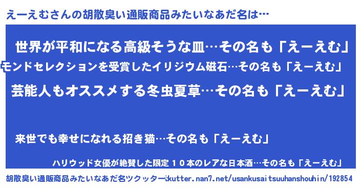| 意味不明あだ名 | 『自称えーえむ』『えーえむフォーエバー』 |