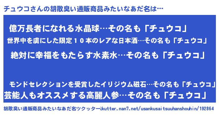 | 意味不明あだ名 | 『永久保存チュウコ』『ペロリンチュウコ』 |