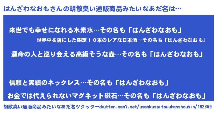 | 肩書あだ名 | 『はんざわなおも大統領』 |