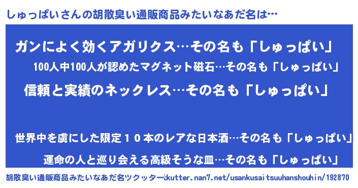 | ヒーロー風カッコイイあだ名 | 『暗黒騎士シュ』『超時空戦士シュッパイ』 |