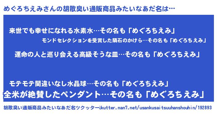 | 肩書あだ名 | 『めぐろちえみ国家主席』 |