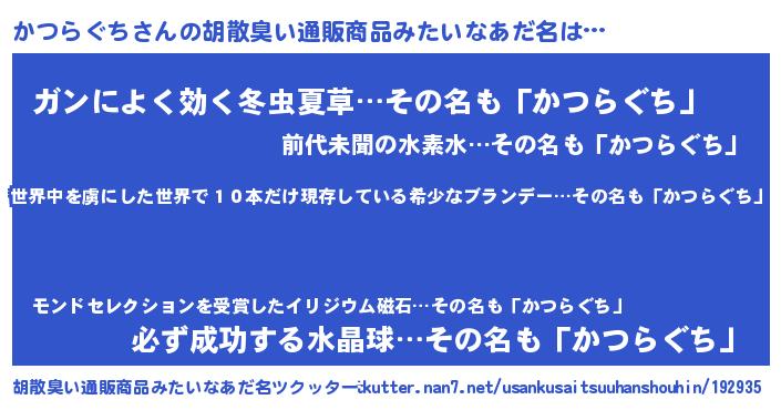 | 女子向けラノベタイトル風あだ名 | 『乙女ゲームの破滅フラグしかない悪役かつらぐちに転生してしまった…』 |