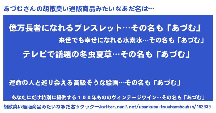 | ヘコむあだ名 | 『あづっふぃ~』『あづむ(笑)』 |