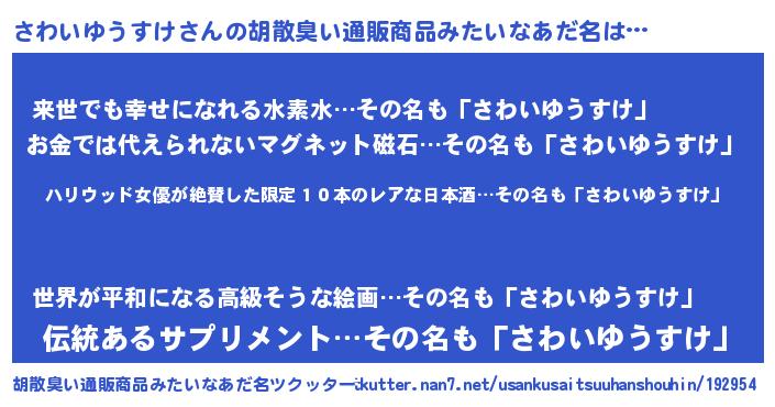 | ヘコむあだ名 | 『さわいゆうすけ(爆)』『さわぷりん』 |