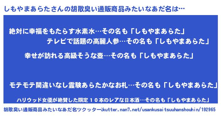 | 肩書あだ名 | 『しもやまあらた大統領』 |