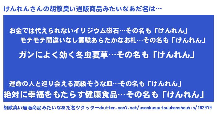 | 意味不明あだ名 | 『自称けんれん』『永久保存けんれん』 |