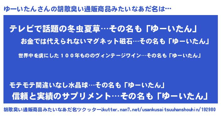 | ヒーロー風カッコイイあだ名 | 『仮面ユーダー』『最強戦士ユーイタン』 |