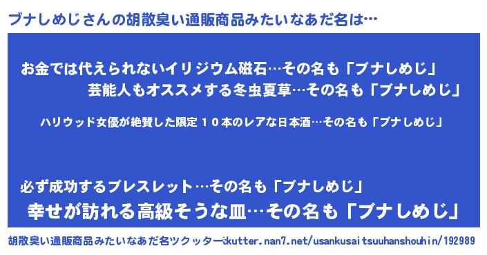 | 意味不明あだ名 | 『住所不定無職ブナしめじ(56歳)』 |