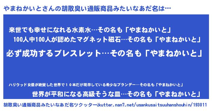 | 欧米人風あだ名 | 『マイケルやまねかいと』 |
