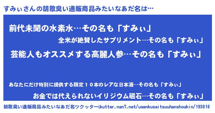 | 意味不明あだ名 | 『自称すみぃ』『永久保存すみぃ』 |