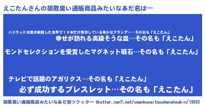 | ヘコむあだ名 | 『えこにー』『牛乳』『えこを』 |
