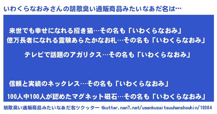 | 意味不明あだ名 | 『自称いわくらなおみ』 |