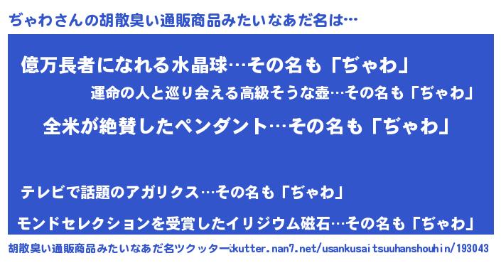 | ヘコむあだ名 | 『ぢゃっちょ』『ぢゃもー』『豆乳』 |