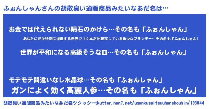 ふぉんしゃんさんの胡散臭い通販商品みたいなあだ名をツクッター!