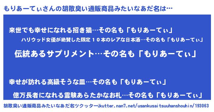 | 意味不明あだ名 | 『とにかく怪しいもりあーてぃ』 |