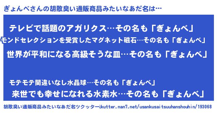 | ヒーロー風カッコイイあだ名 | 『ウルトラぎょんべマン』『ネオギョンベ』 |