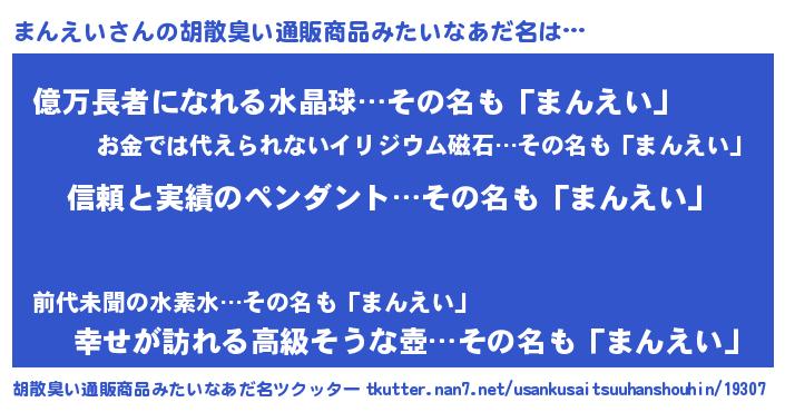 | 意味不明あだ名 | 『とにかく怪しいまんえい』 |