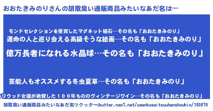 | 女子向けラノベタイトル風あだ名 | 『誰かこのおおたきみのりを説明してください! ~契約から始まるウェディング~』 |