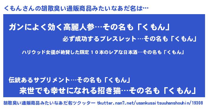 | 意味不明あだ名 | 『住所不定無職くもん(68歳)』『自称くもん』 |
