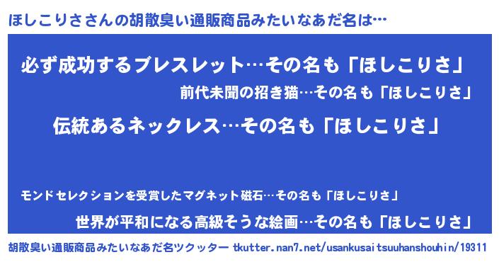 | ヒーロー風カッコイイあだ名 | 『幻影騎士ホシ』『スーパーホシコリサ』 |