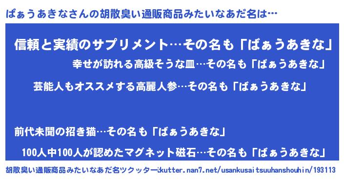 | 意味不明あだ名 | 『自称ばぁうあきな』 |