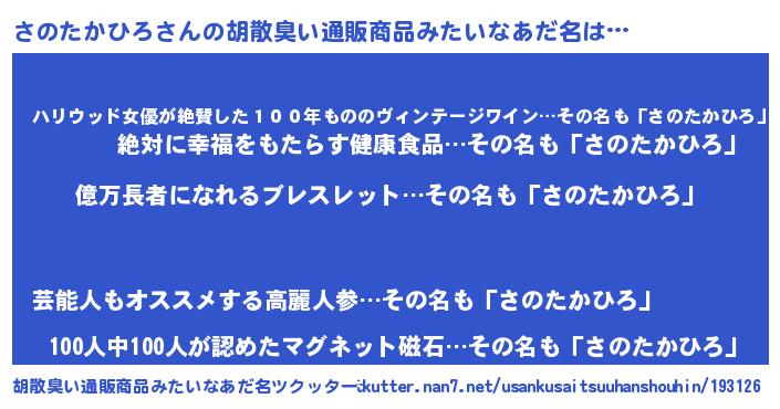 | ヘコむあだ名 | 『さのにー』『さのたかひろ(笑)』 |