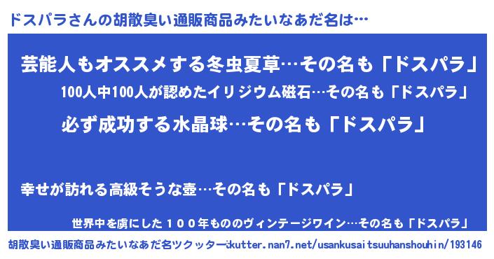 | ヒーロー風カッコイイあだ名 | 『スーパードスパラ』『最強戦士ドスパラ』 |