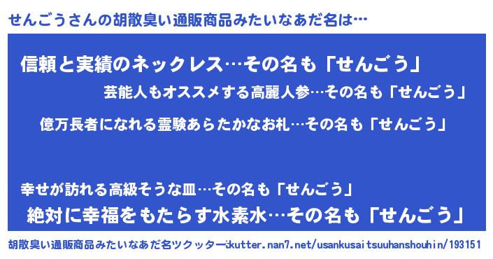 | ヘコむあだ名 | 『せんっふぃ~』『せん太郎』『豆乳』 |