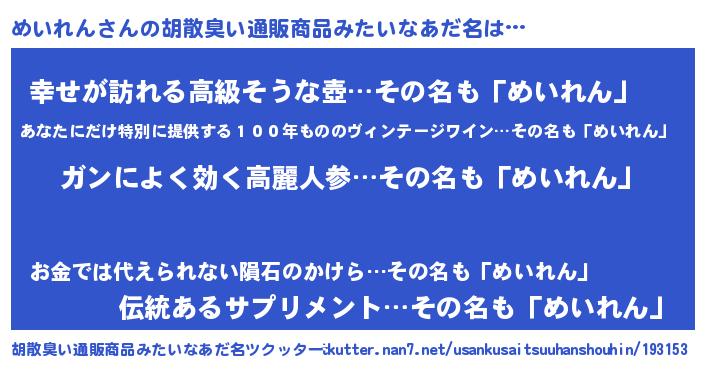 | ヘコむあだ名 | 『つくし』『めいっ子』『めいにー』 |
