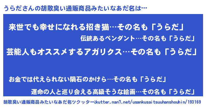 | 意味不明あだ名 | 『自称うらだ』『永久保存うらだ』 |