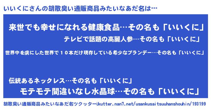 | 意味不明あだ名 | 『住所不定無職いいくに(81歳)』 |