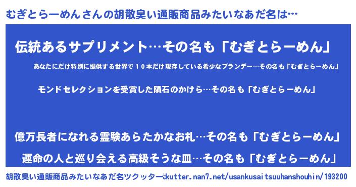 | ヒーロー風カッコイイあだ名 | 『天空の使者むぎとらーめん』 |