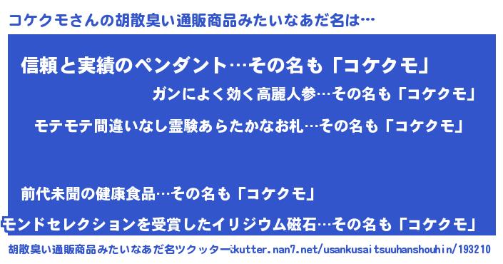 | 意味不明あだ名 | 『ペロリンコケクモ』『自称コケクモ』 |
