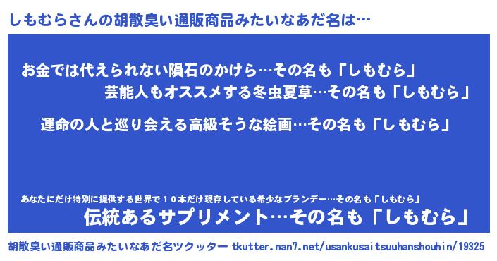 | 意味不明あだ名 | 『しもむらフォーエバー』『自称しもむら』 |