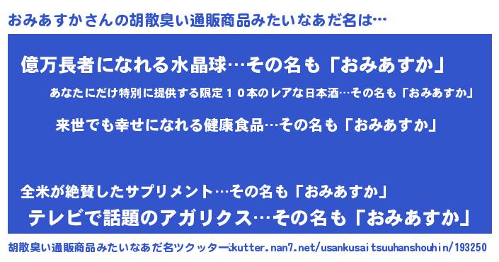 | ヘコむあだ名 | 『おみあすか(笑)』『おみにー』 |