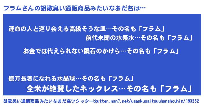 | 恥ずかしいあだ名 | 『ボンバーヘッドフラ』『フラっちょ』 |