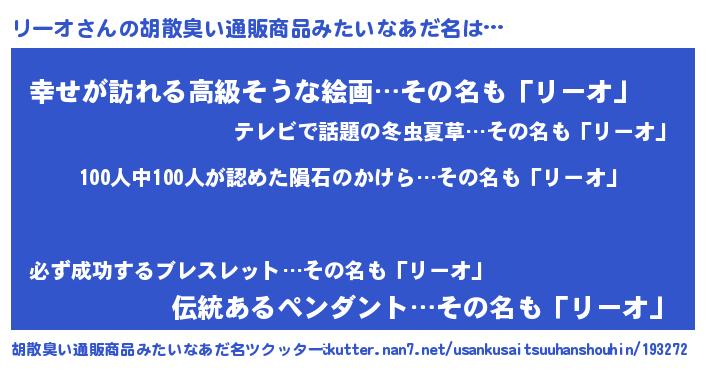 | 男性向けラノベタイトル風あだ名 | 『緋弾のリーオ』『リーオスレイヤー』 |