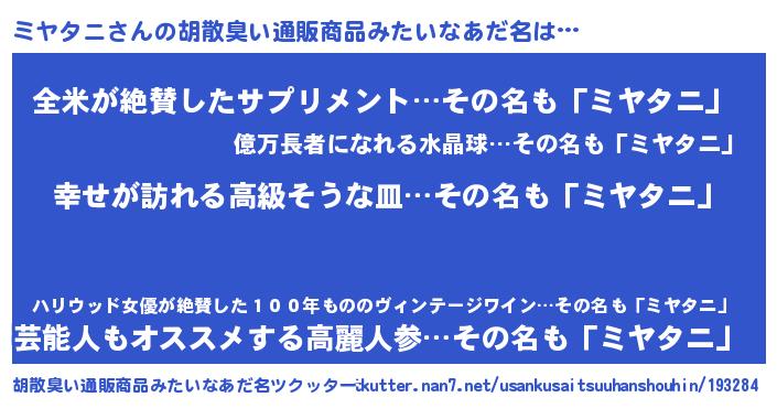 | ポケモン風あだ名 | 『ミヤタダネ』『ヒミヤタニ』 |