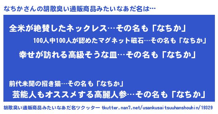 | 肩書あだ名 | 『なちか国家主席』『なちか中尉』 |