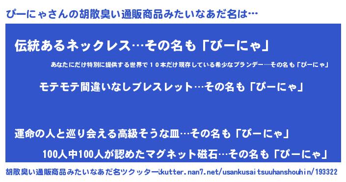 | 欧米人風あだ名 | 『マイケルぴーにゃ』『ウサインぴーにゃ』 |