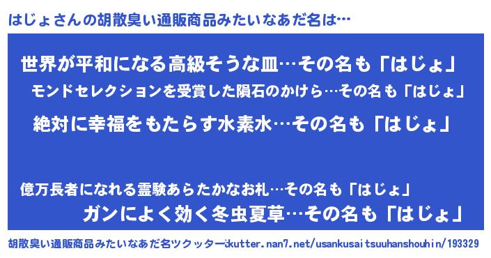 | 意味不明あだ名 | 『永久保存はじょ』『はじょフォーエバー』 |